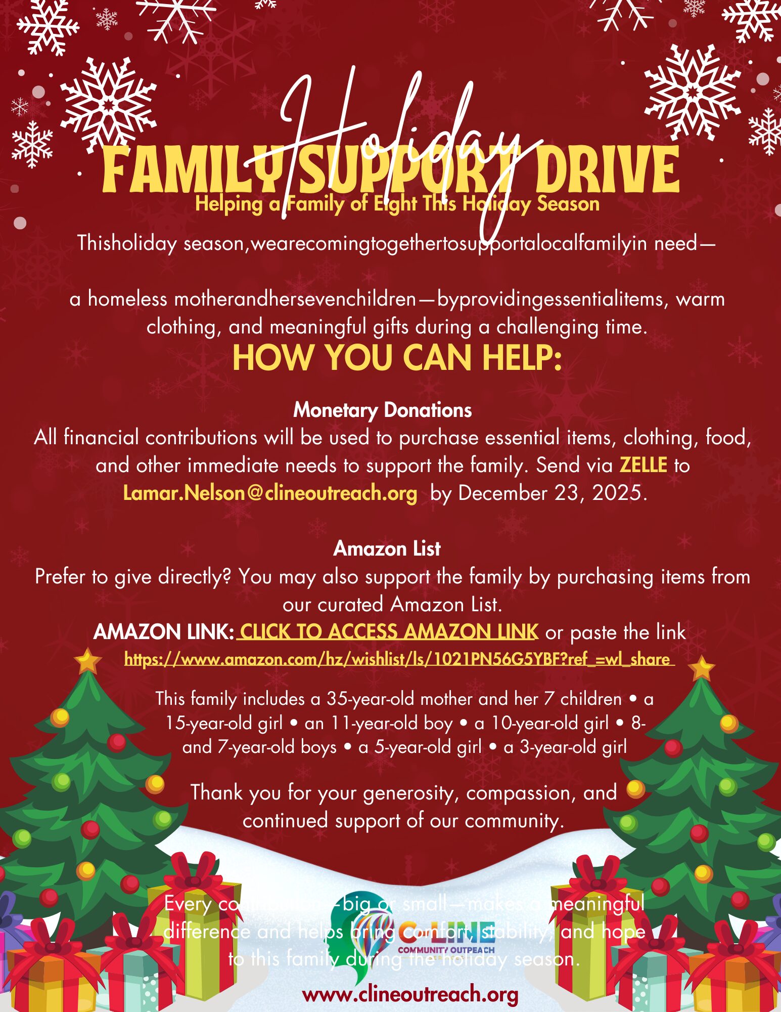 This holiday season, C-Line is gathering food, clothing, and toys to share with individuals and families in need. Your generosity helps create warmth, connection, and hope during a meaningful time of year. All ages and community members are welcome to participate.